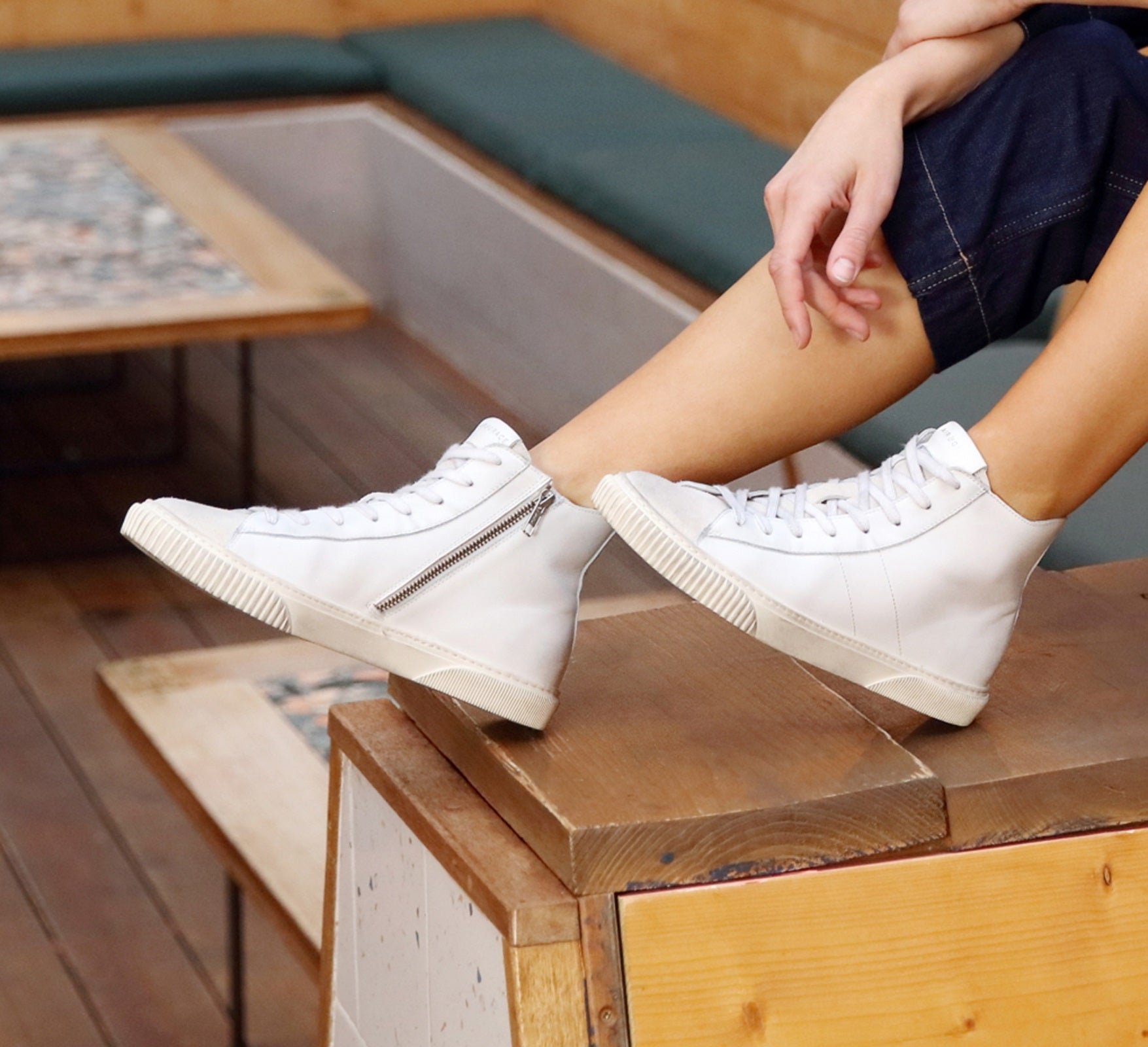 “We worked with a sole supplier to create a new unit exclusive to Air & Grace to encapsulate the retro inspiration, along with offering it in both a low and high top, vintage and clean finish so that there’s something for everyone.”