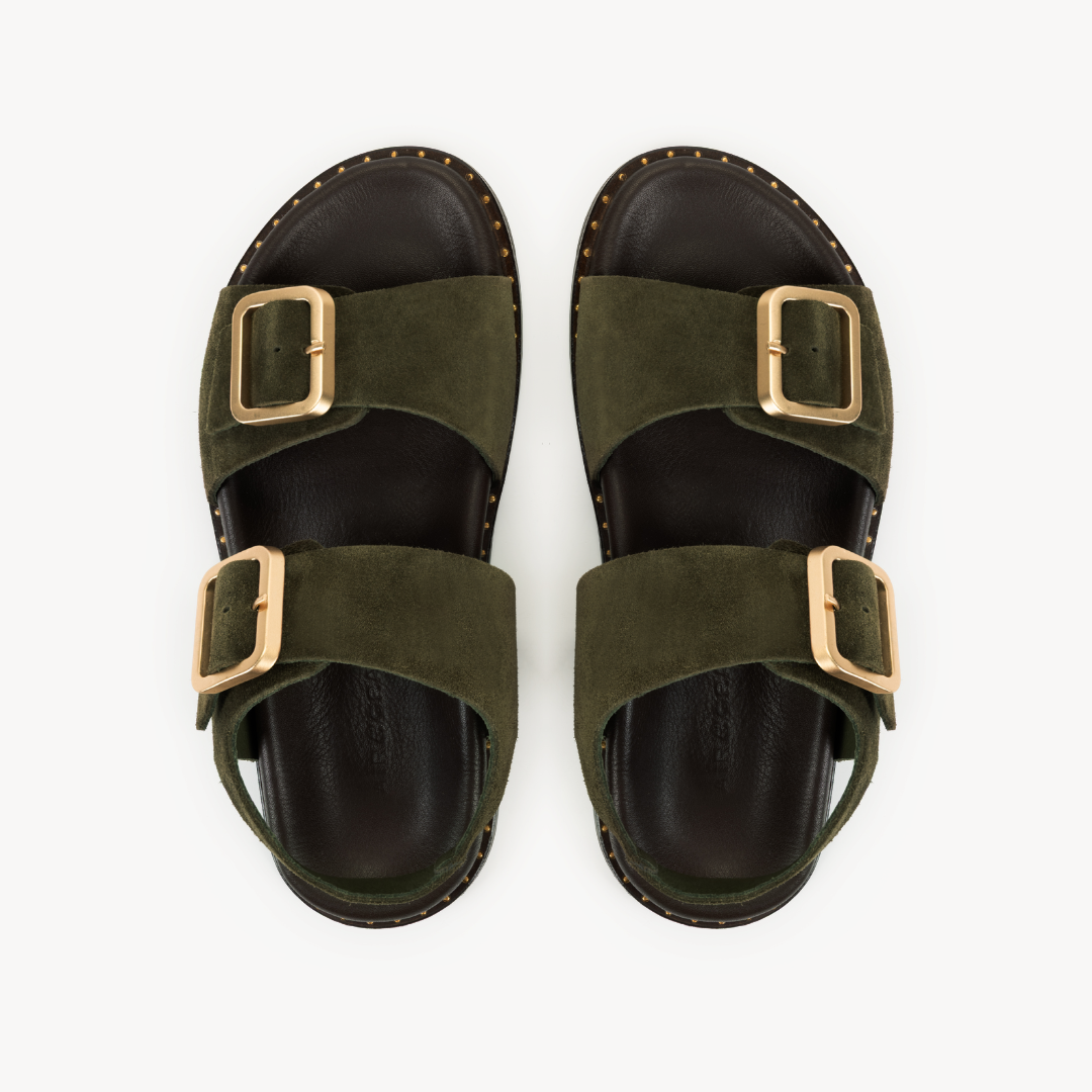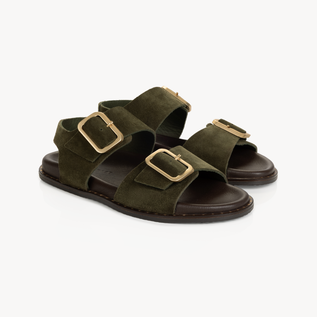 Gala Two Bar Back Strap Sandals: Olive Suede