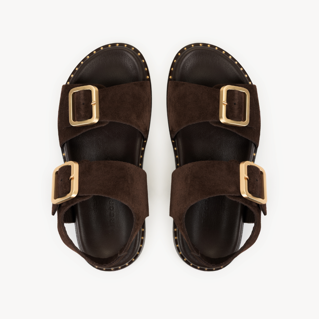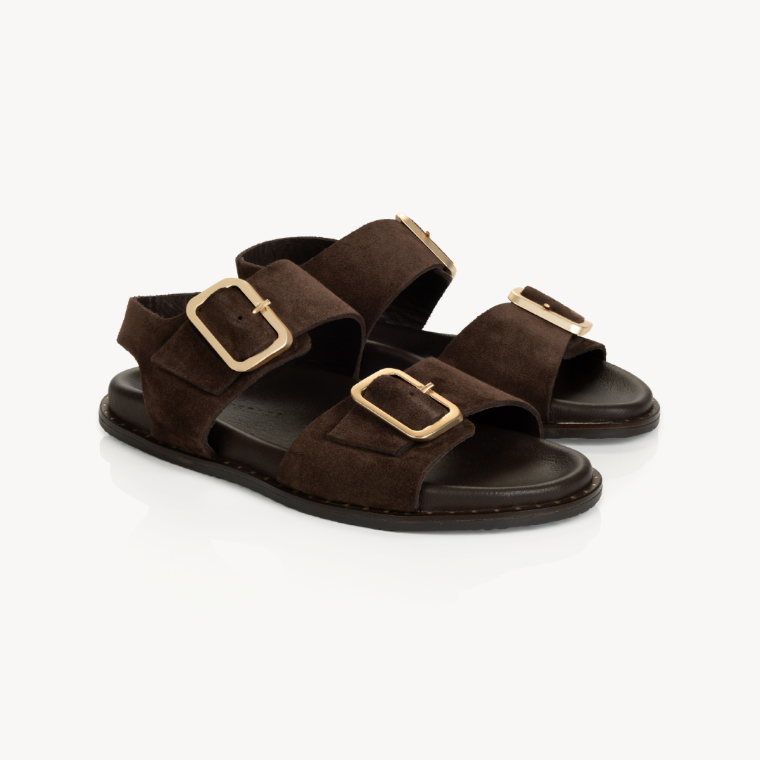 Gala Two Bar Back Strap Sandals: Chocolate Brown Suede
