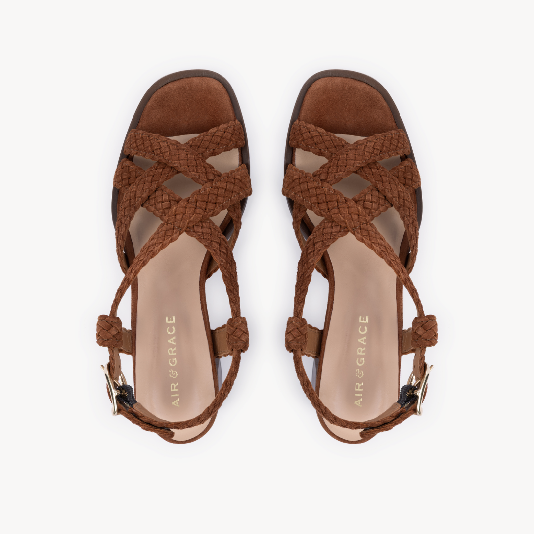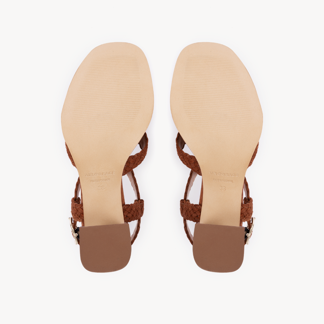 Solene Woven Block Heel Sandals: Tan Suede - Pre-Order (Dispatch w/c 27/04/26)