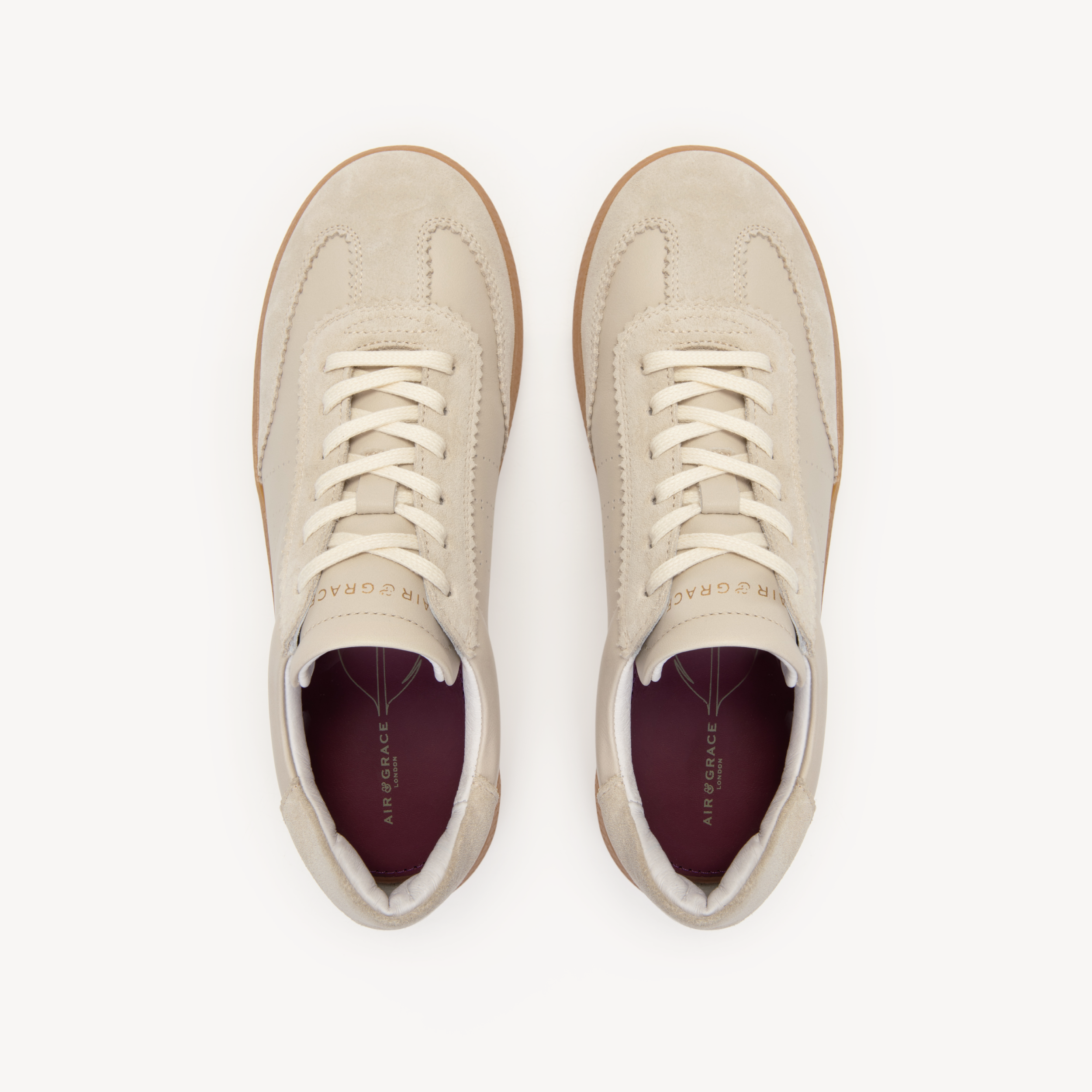 Beige leather with Beige suede and perforated 'A' detailing.