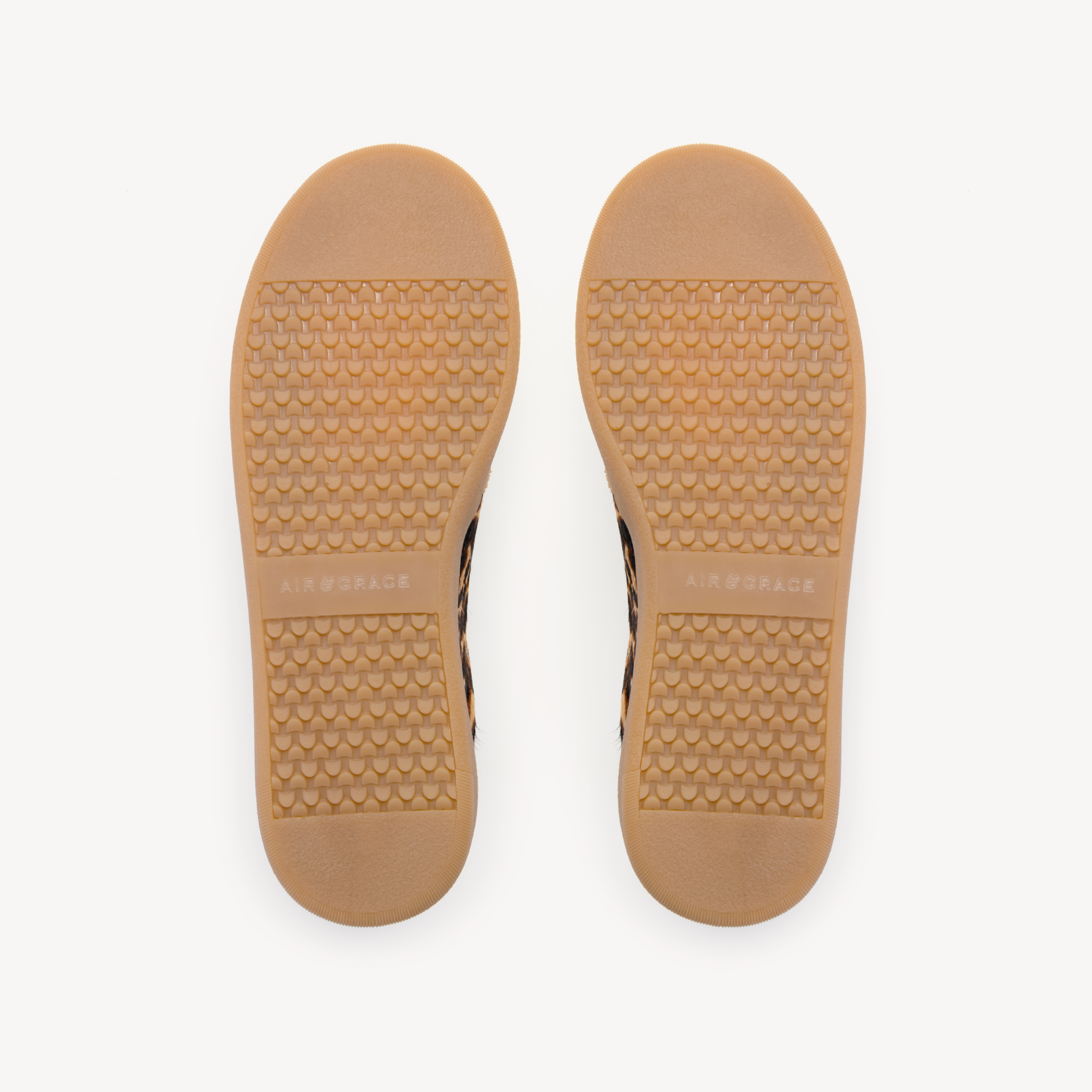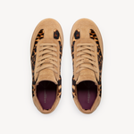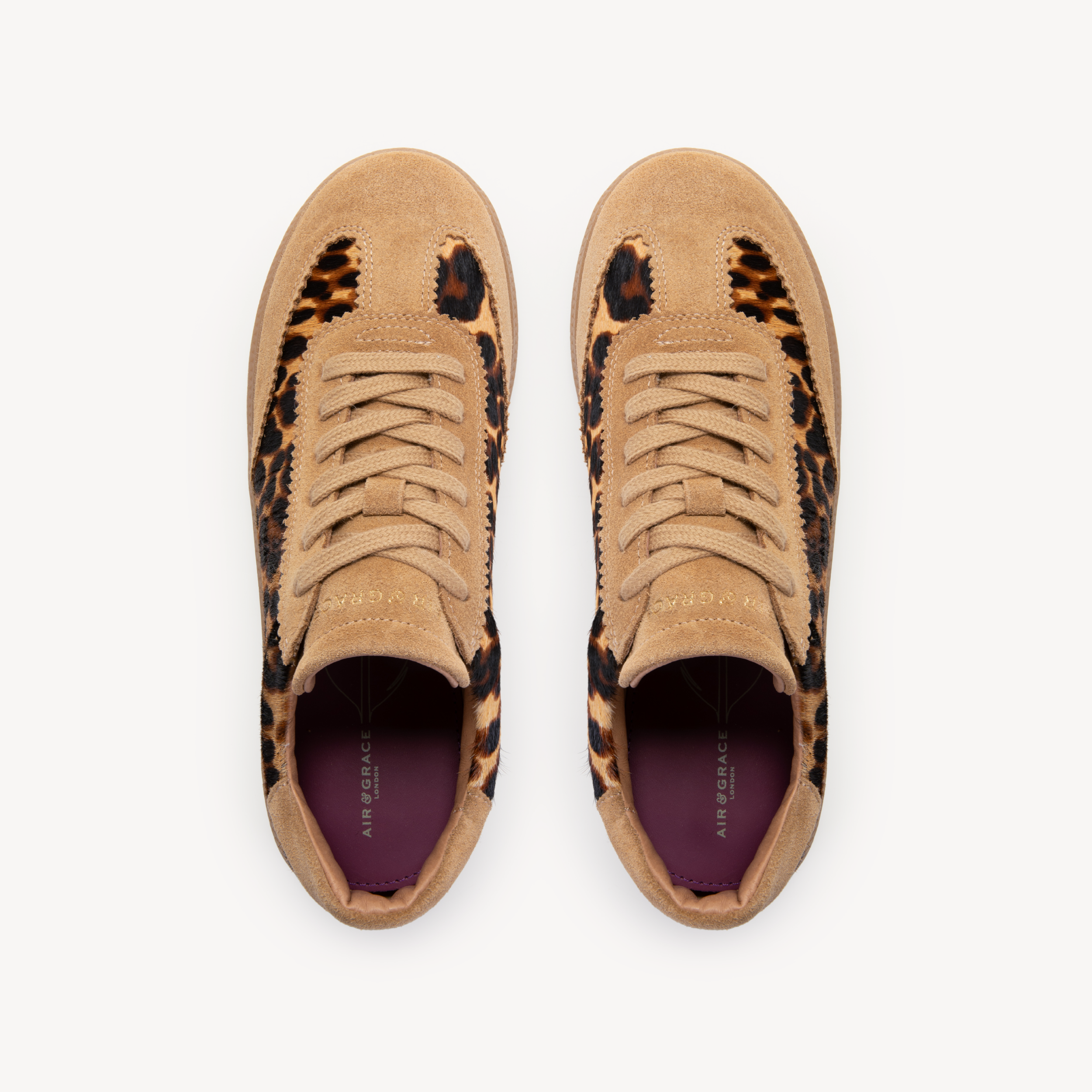 Upper: Leopard print pony hair on leather with camel coloured suede detailing.