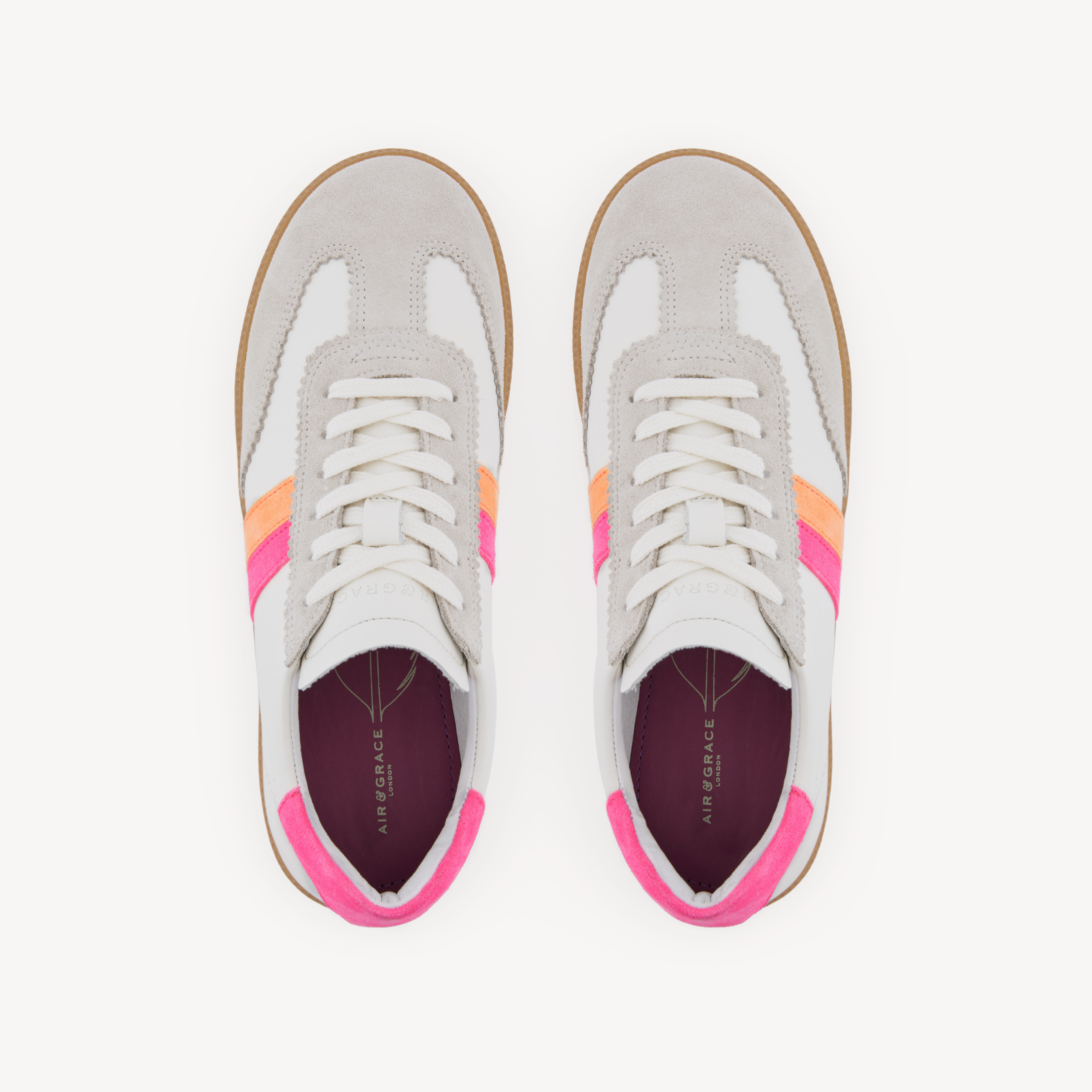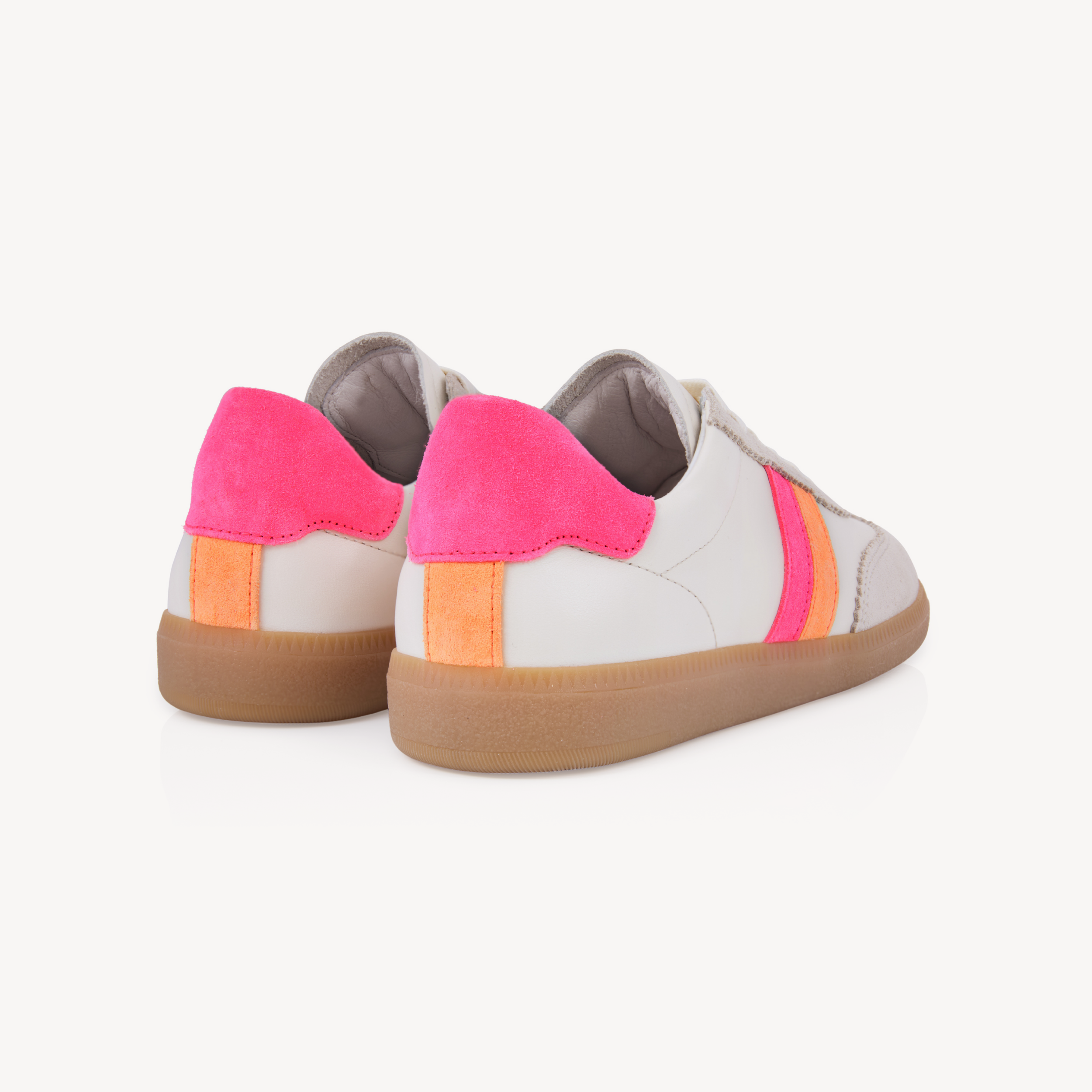 Isla: Off White & Neon Stripe Leather & Suede Trainers