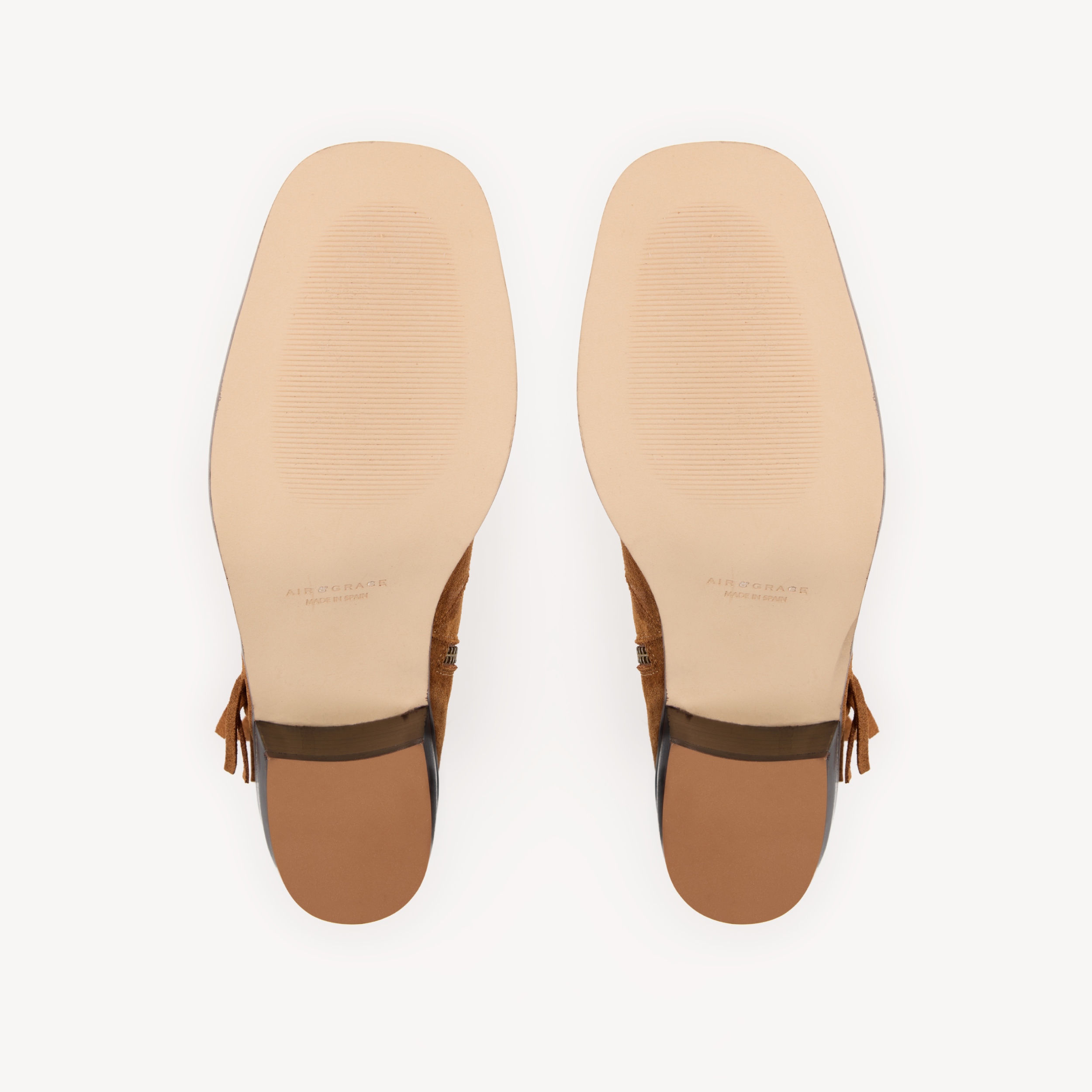 Upper: Tan suede with fringe on outside and inside zip