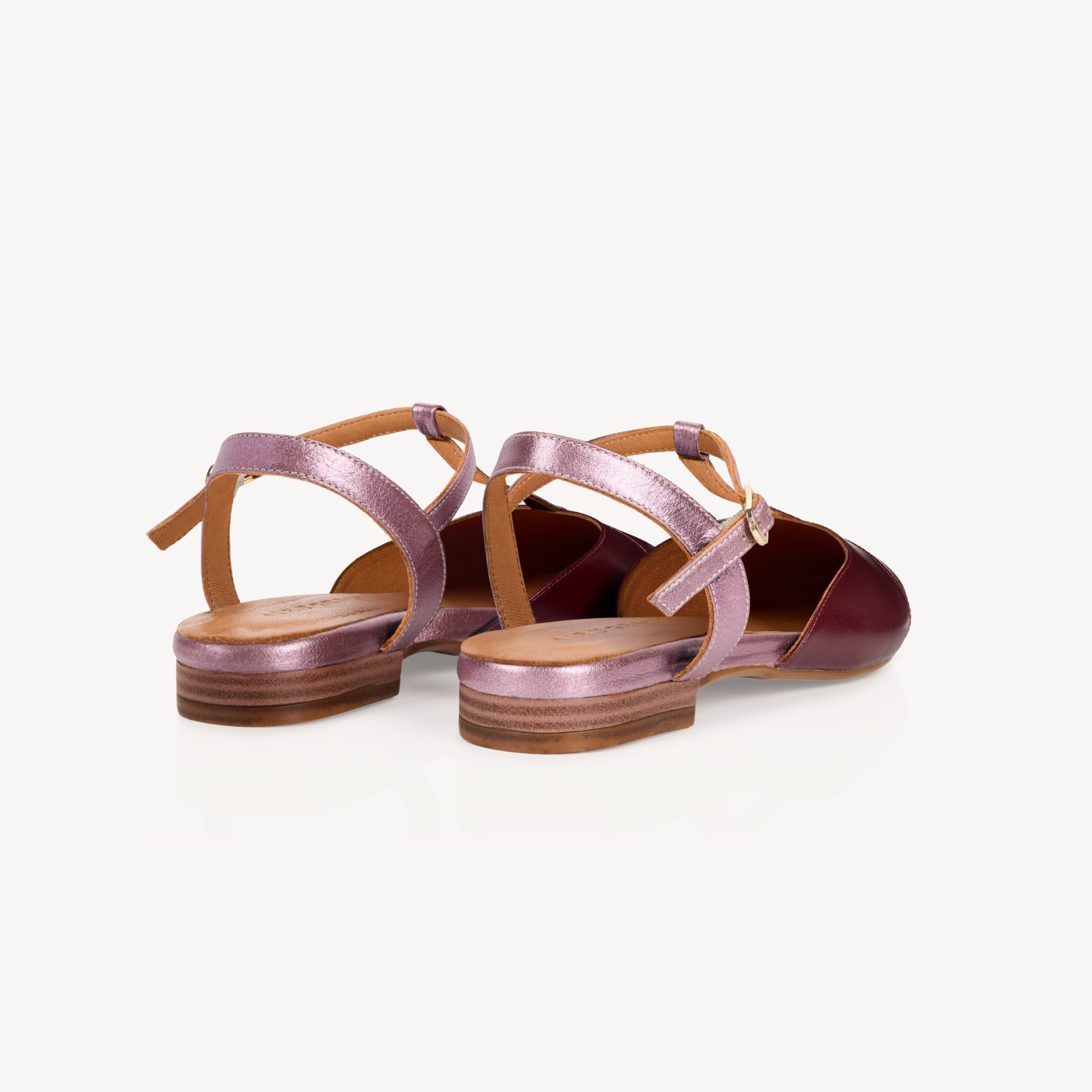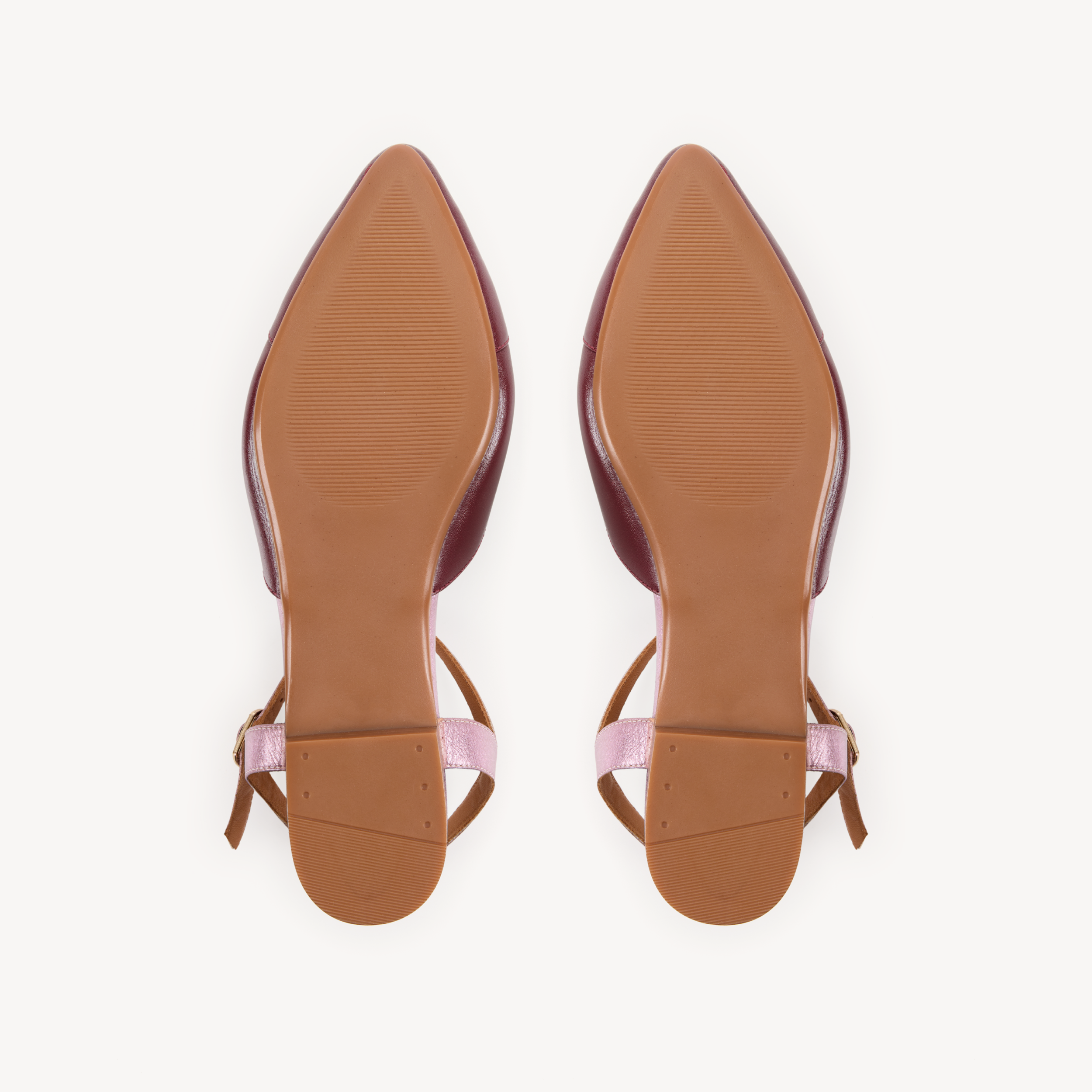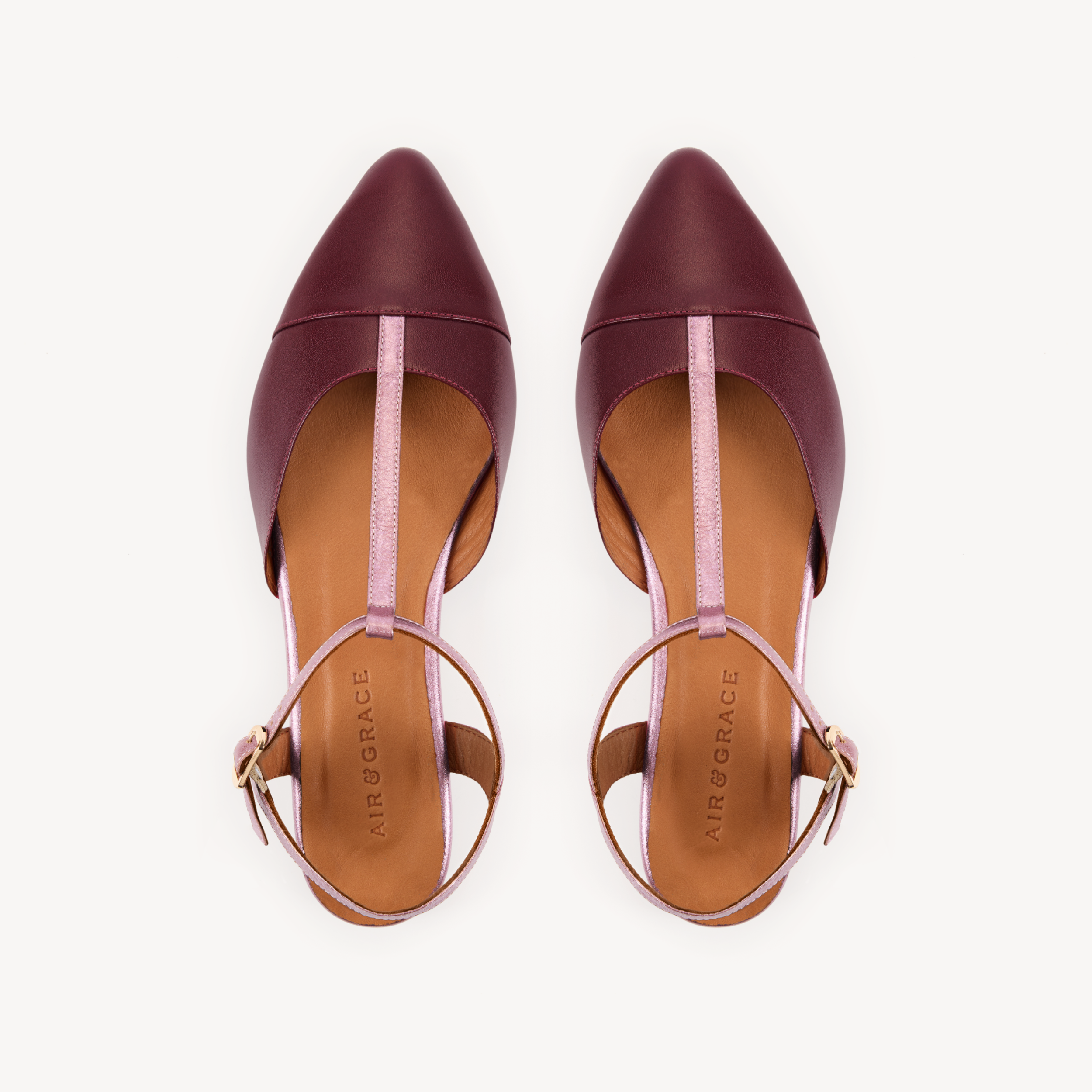 Anais: Burgundy Leather Pointed T-Bar Flats