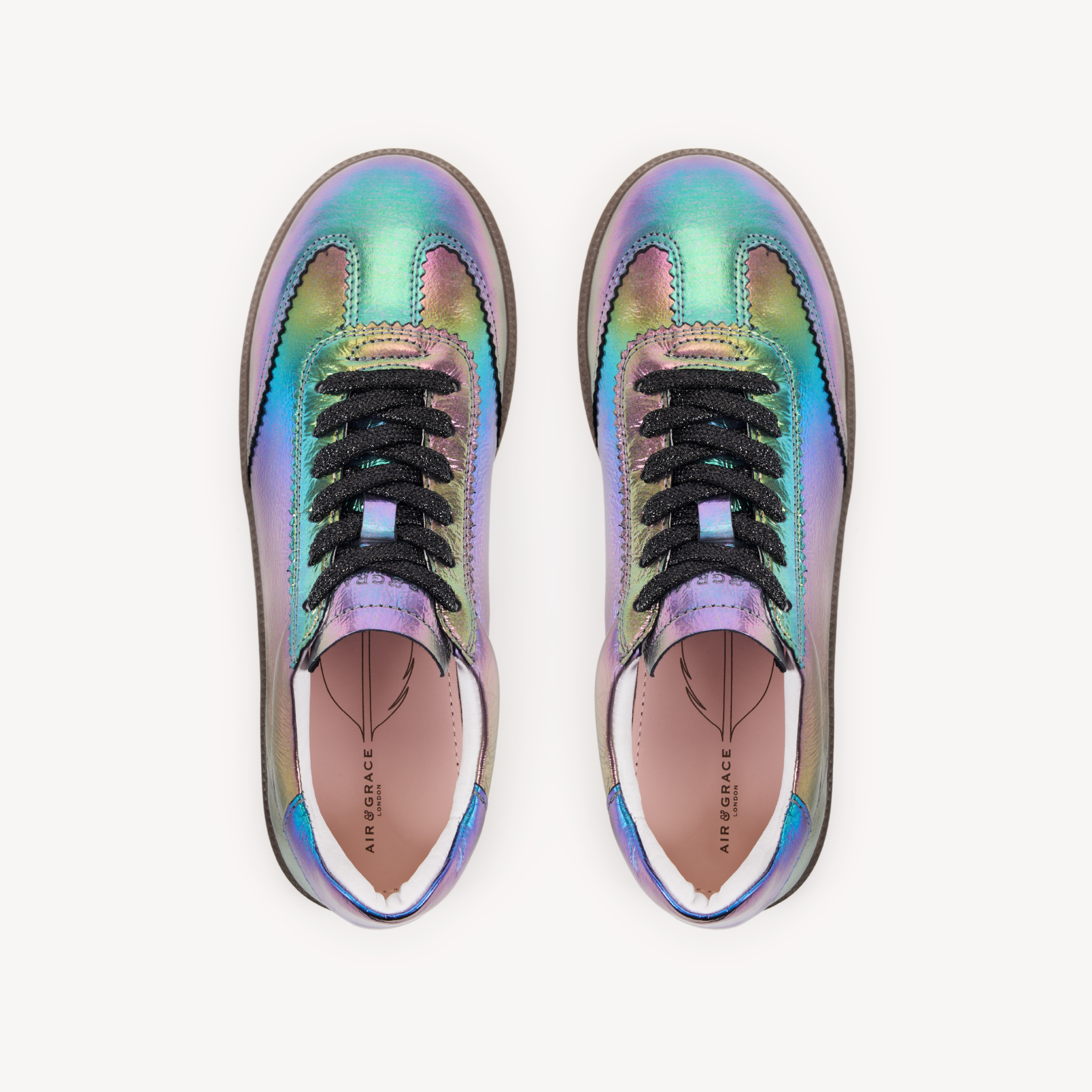 Ombre metallic leather with black glitter laces.