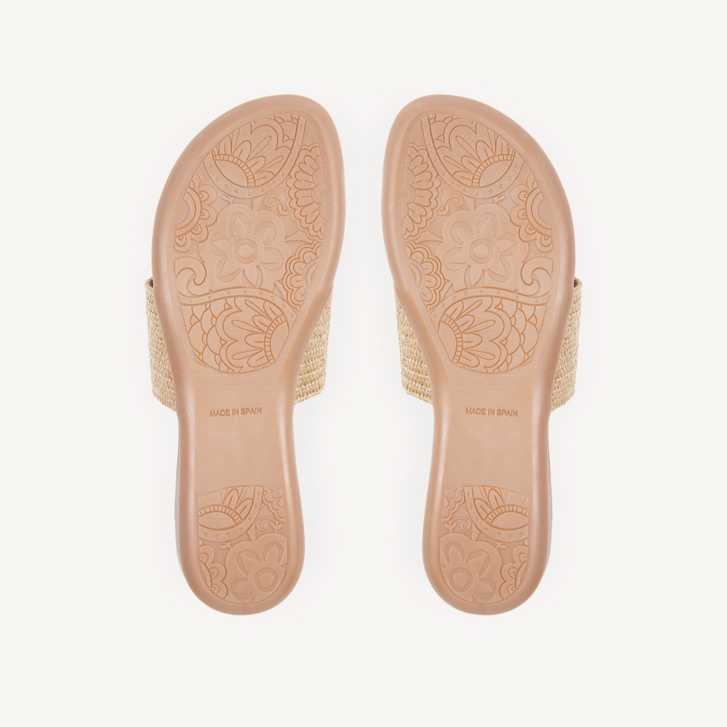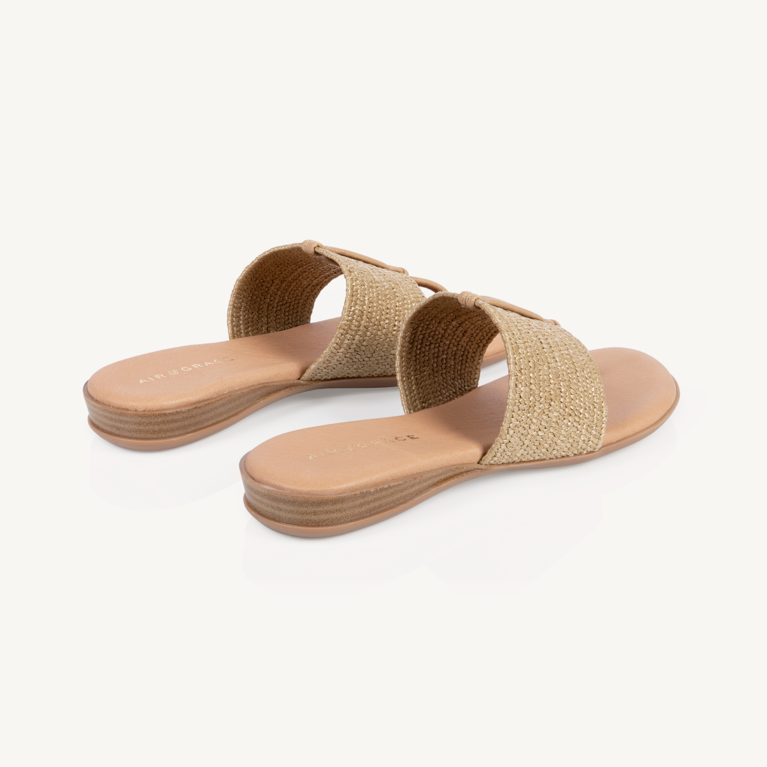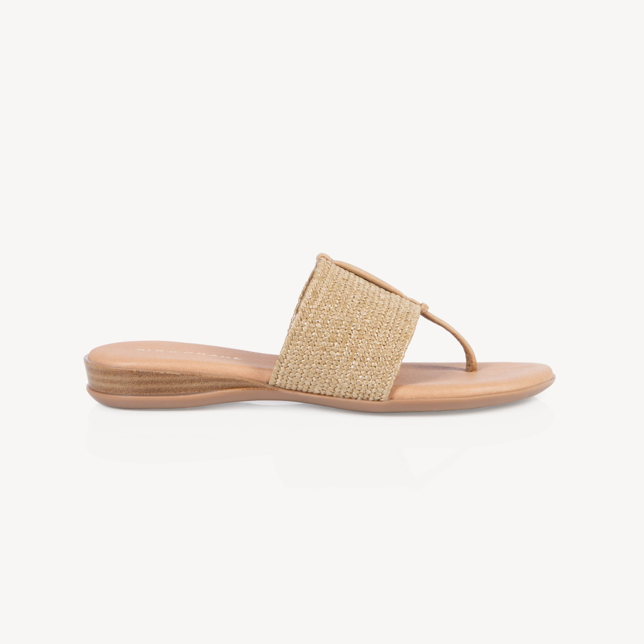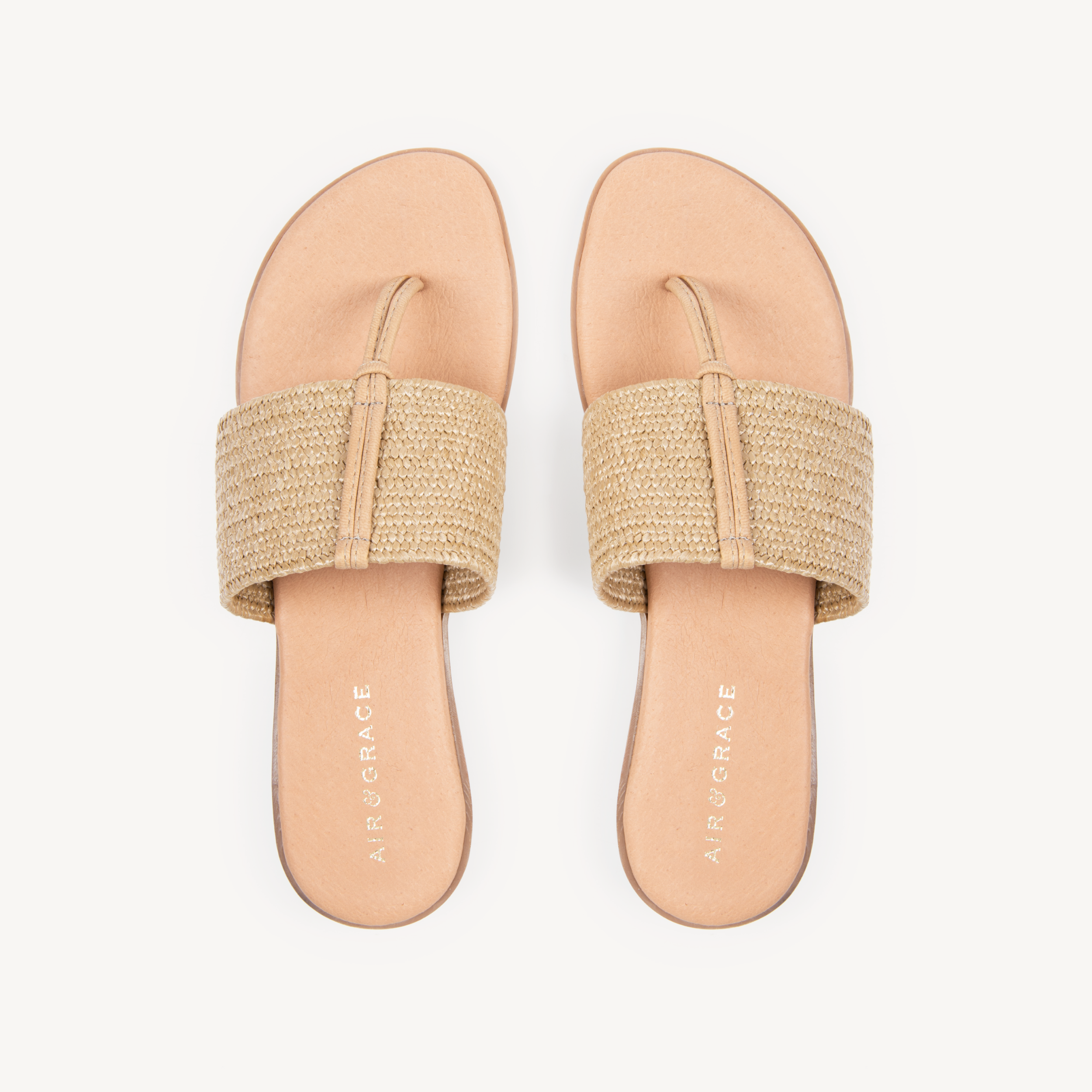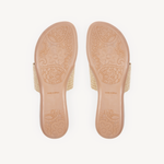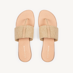 Upper: Taupe stretch raffia with toe post.
