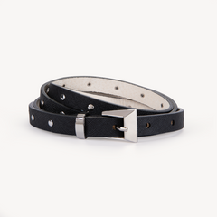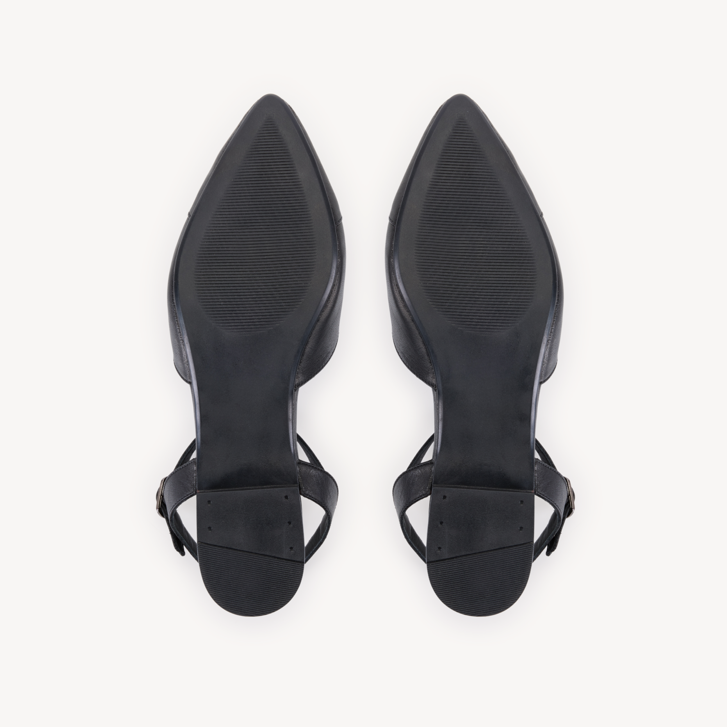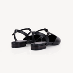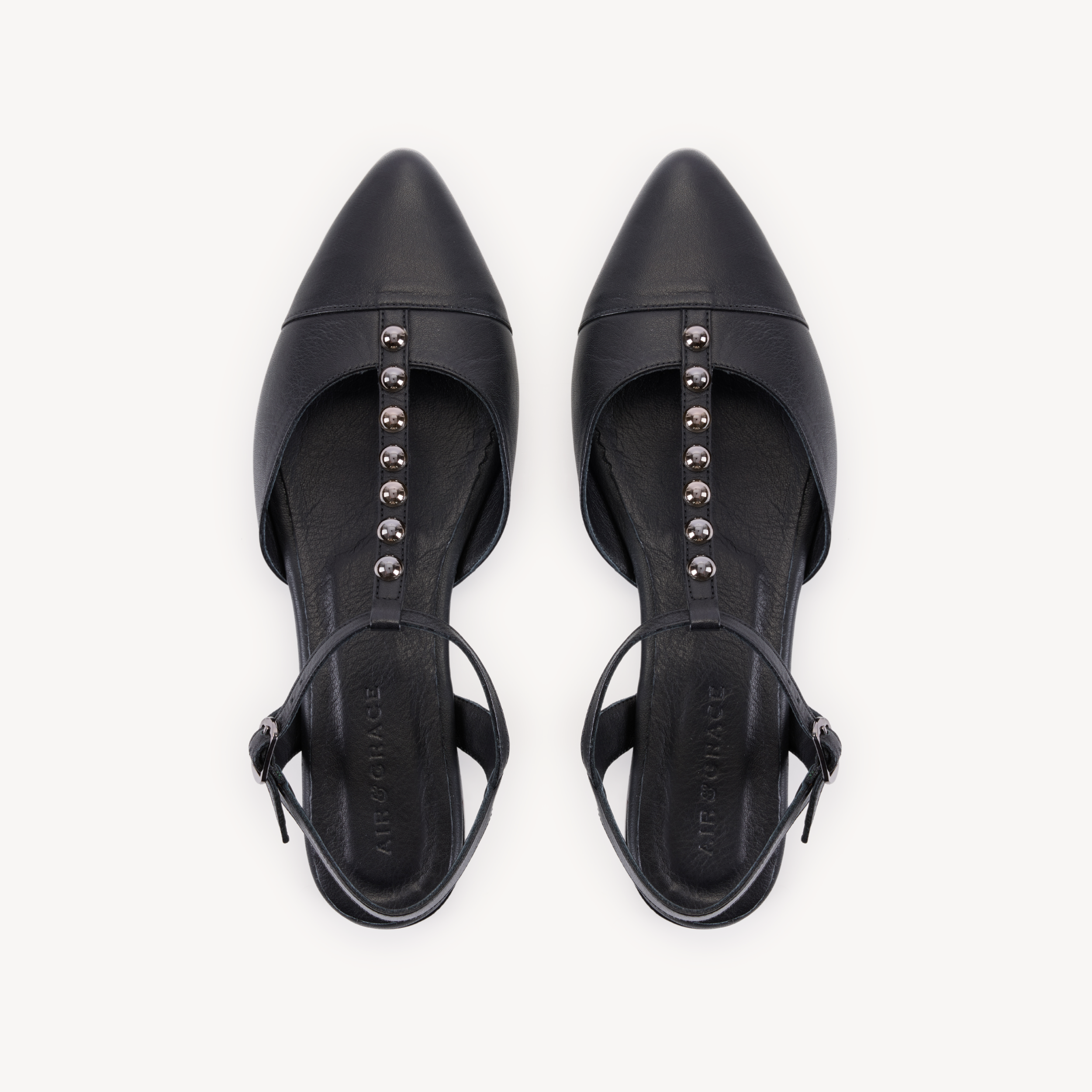 Anais: Black Leather Studded Pointed T-Bar Flats