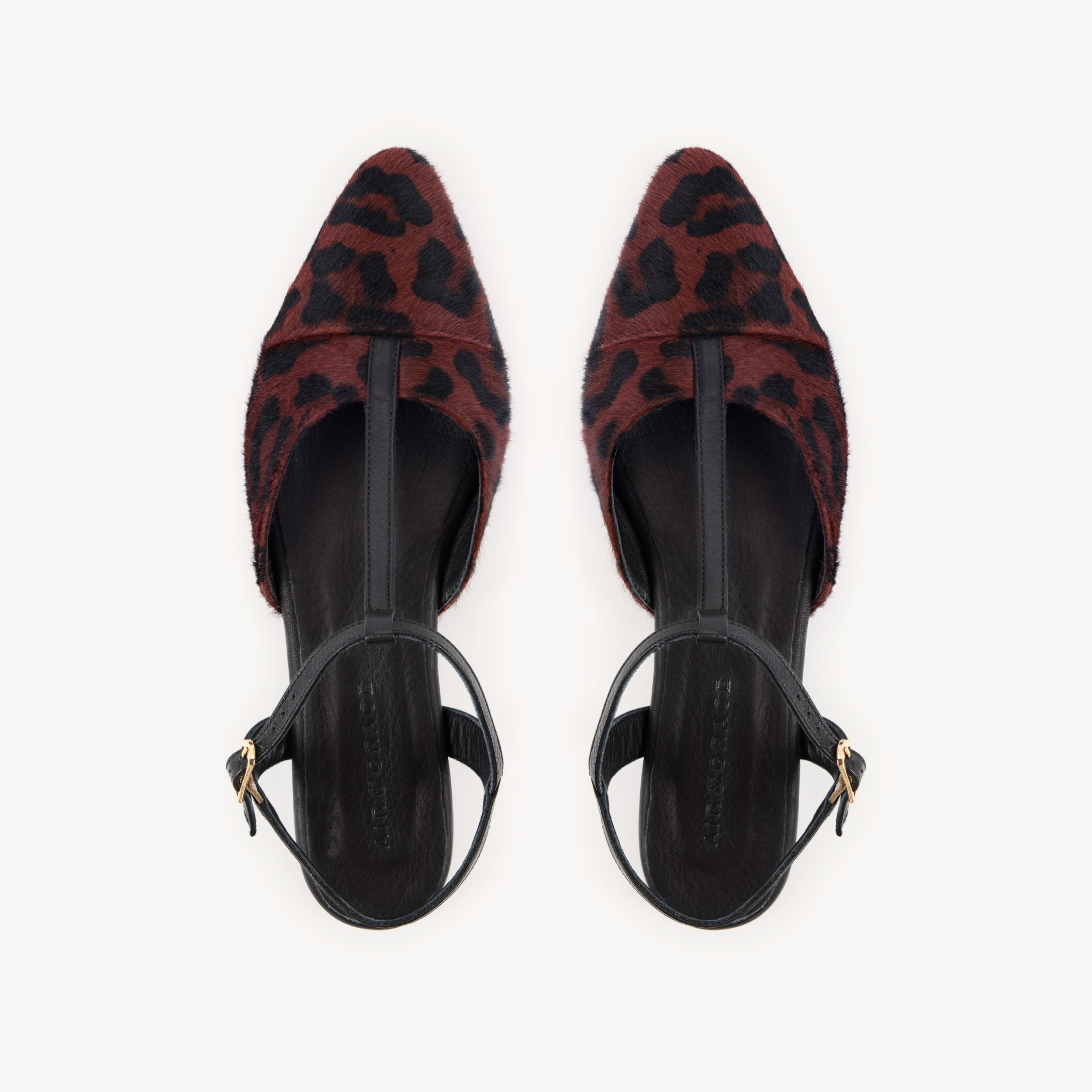 Anais: Leopard & Black Pointed T-Bar Flats
