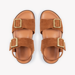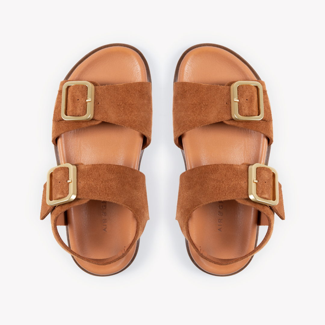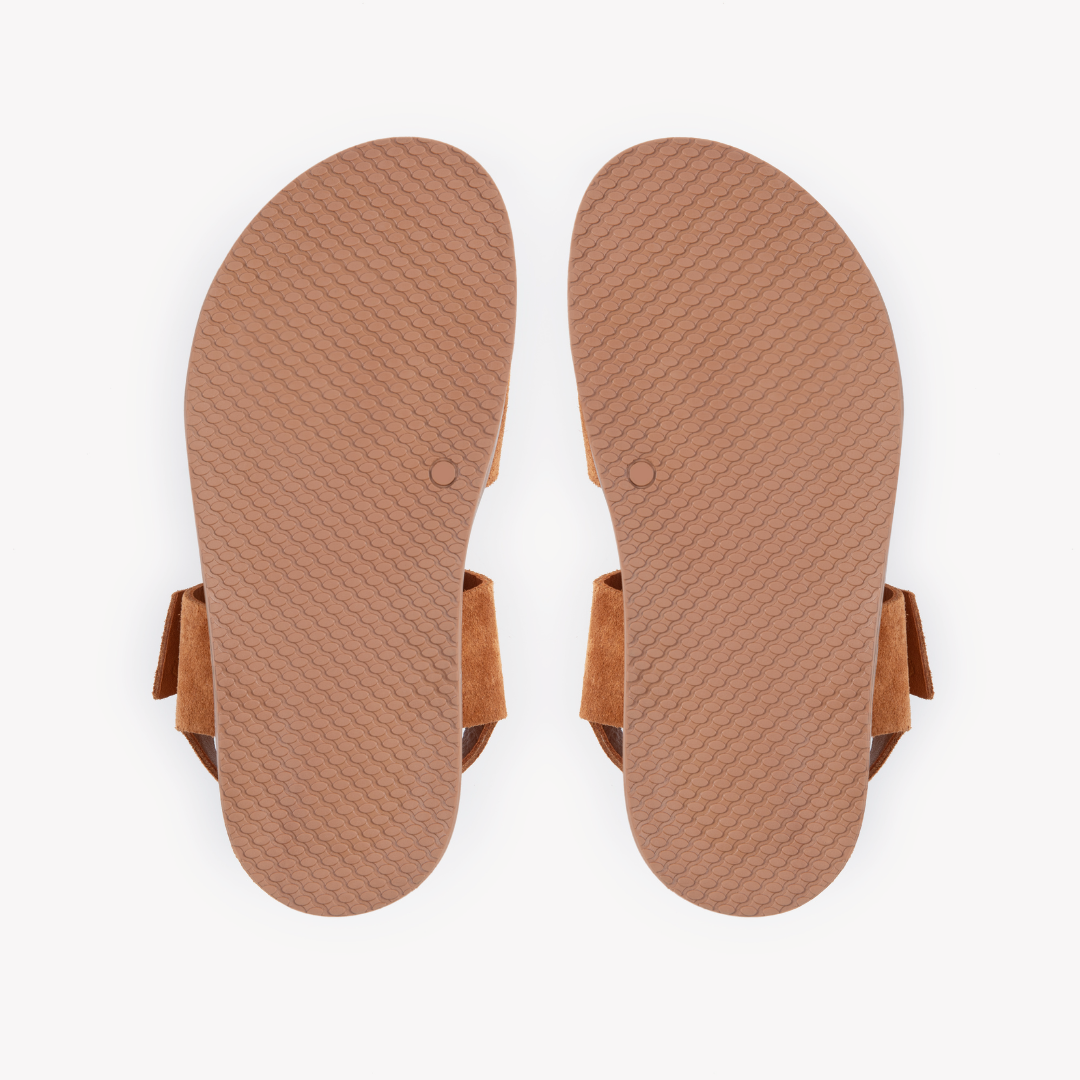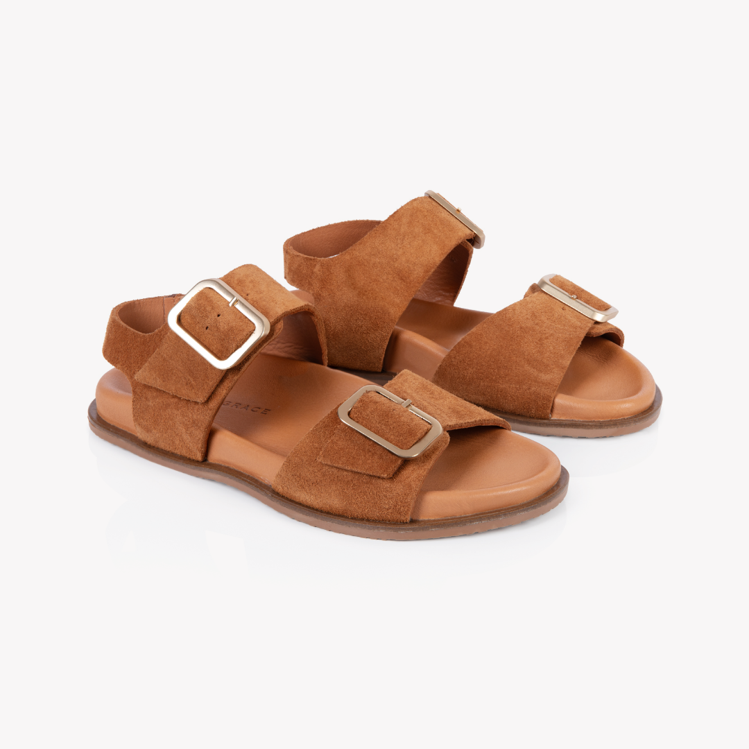 Gala: Tan Suede Two Bar Back Strap Sandals