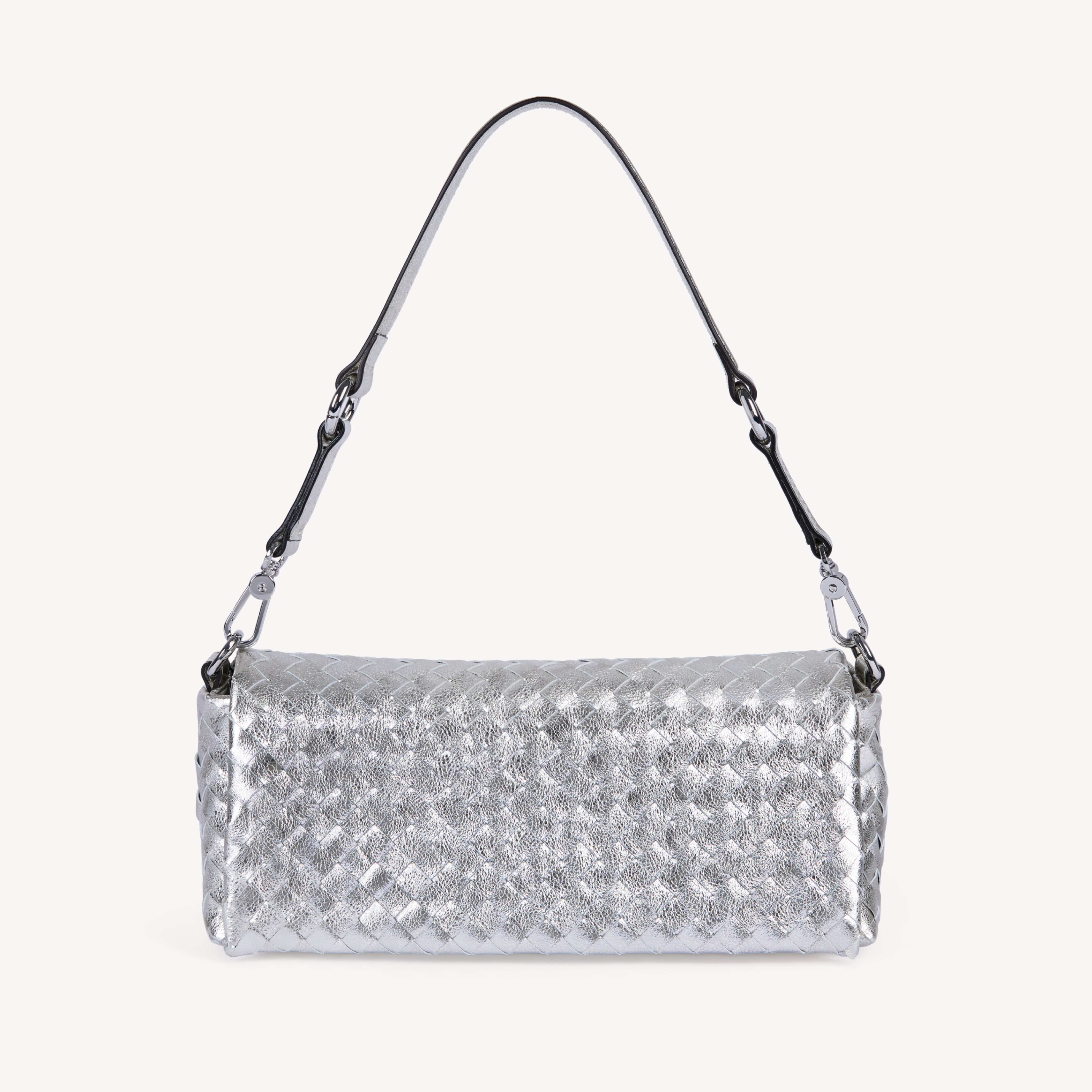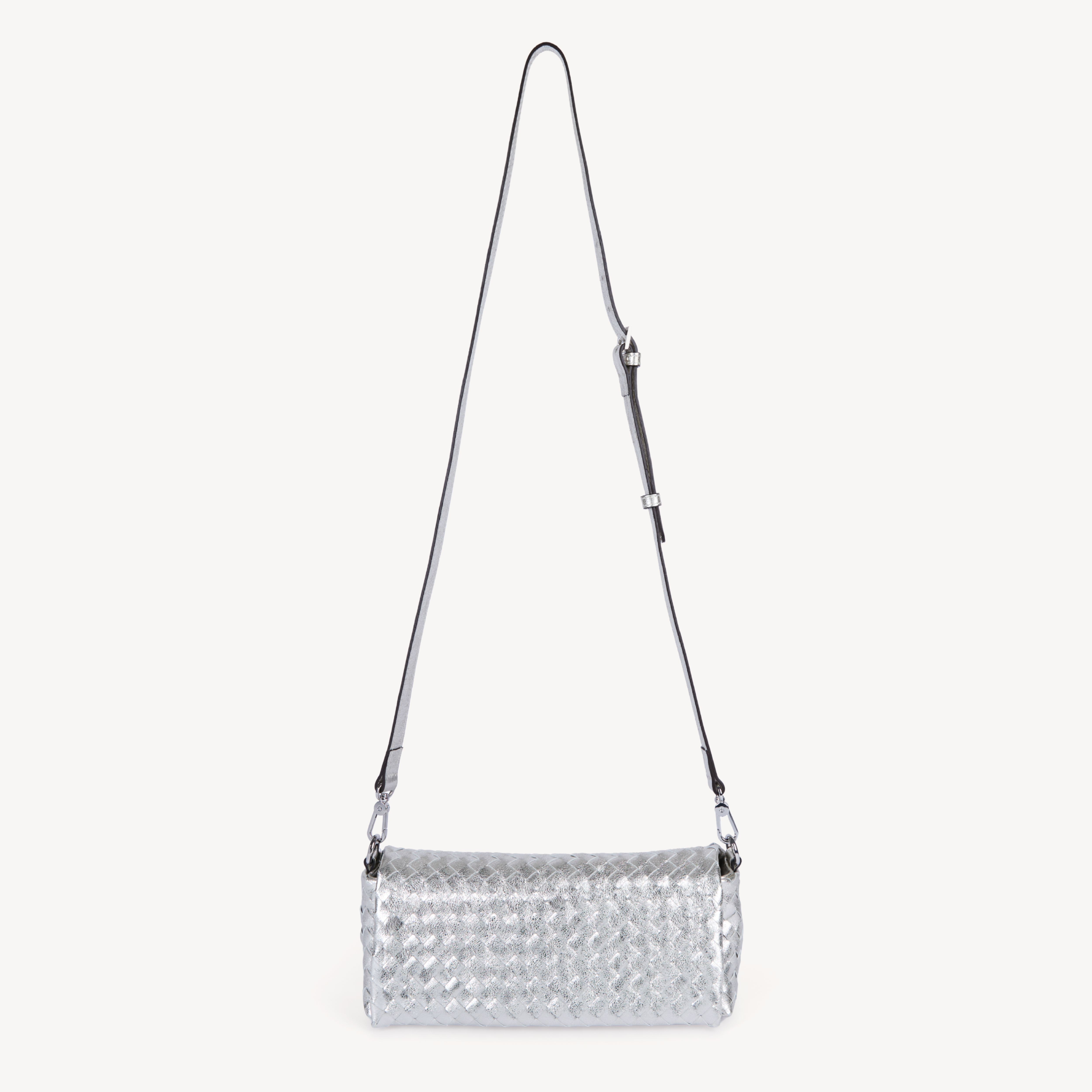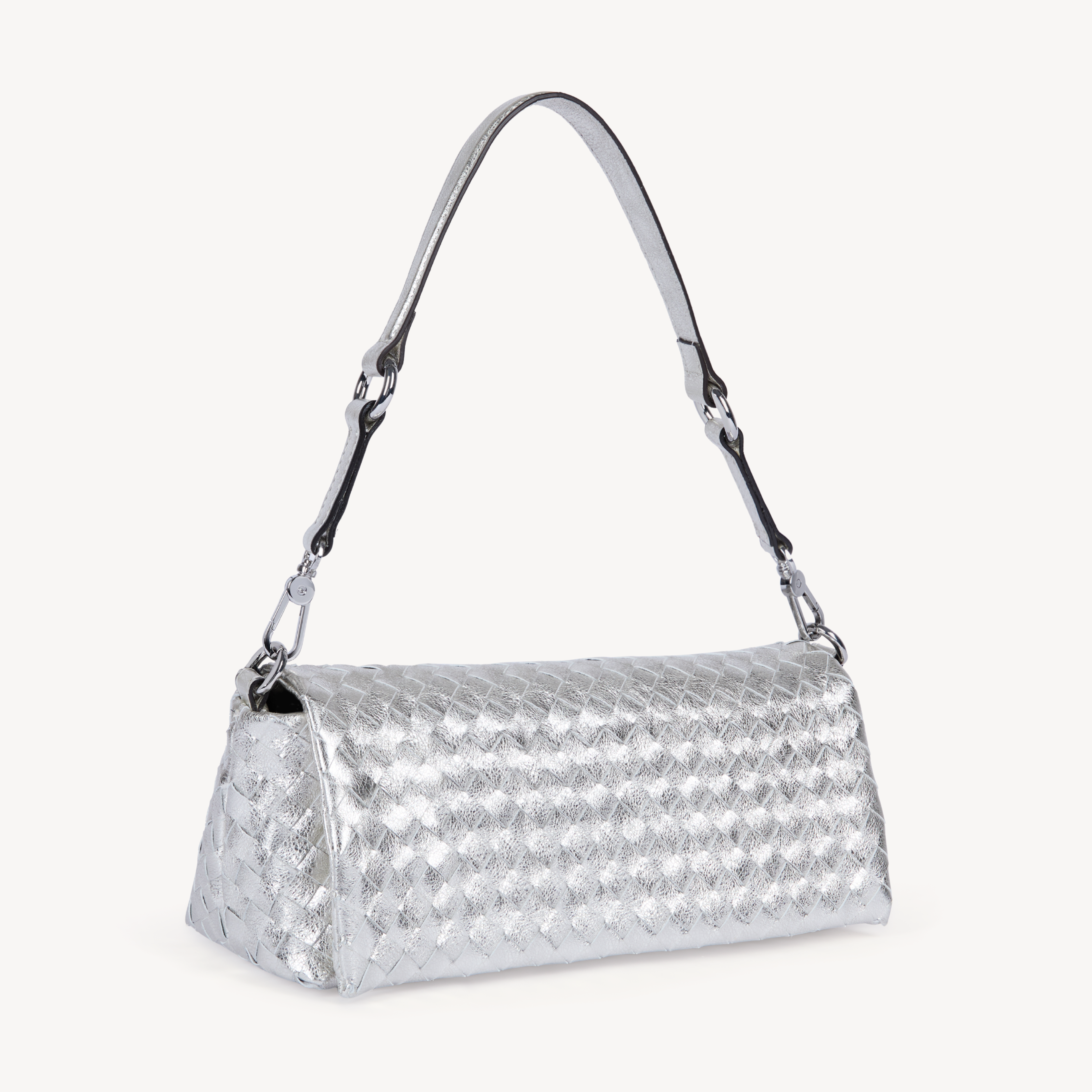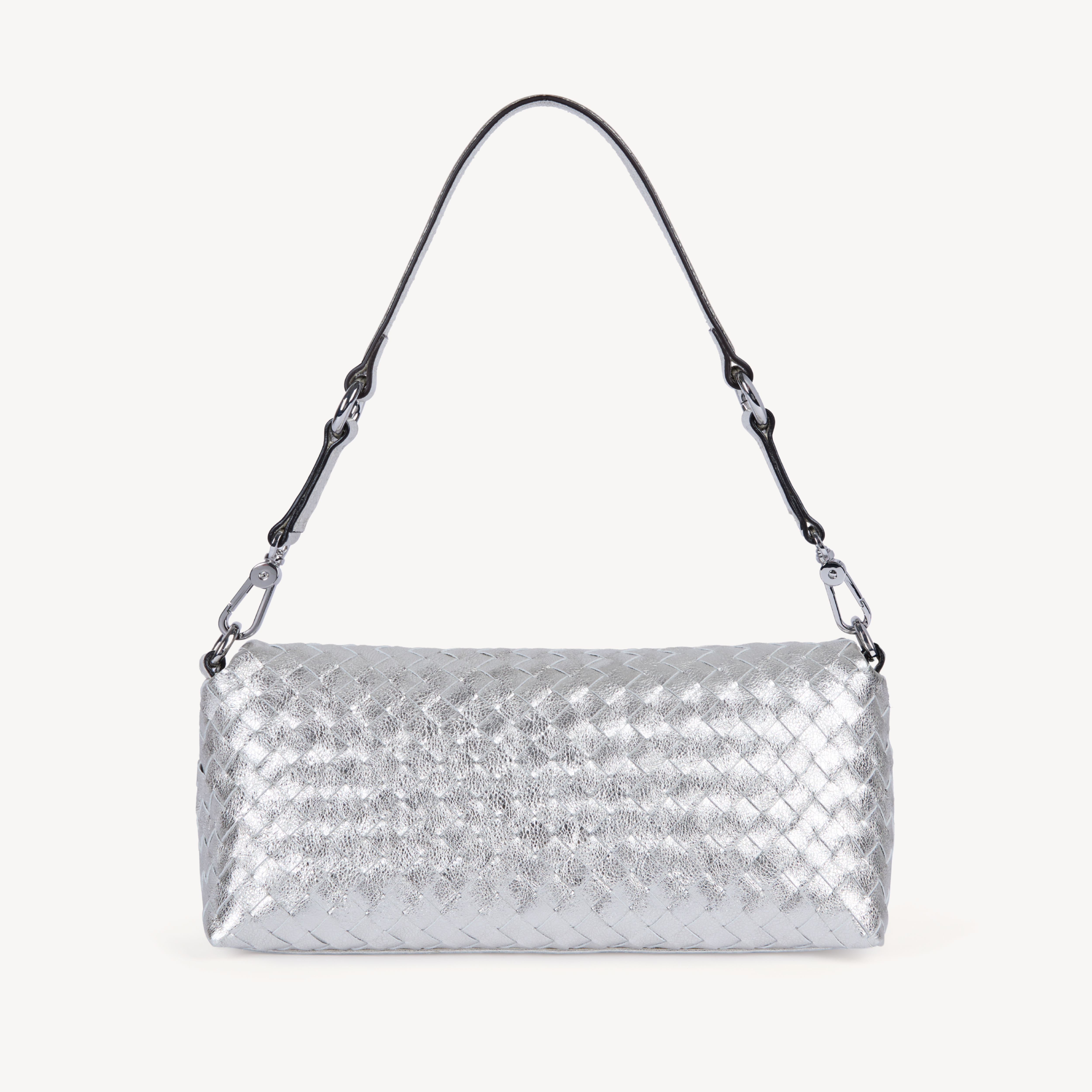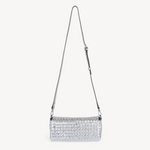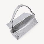 Silver metallic woven leather multi way handbag with silver hardware