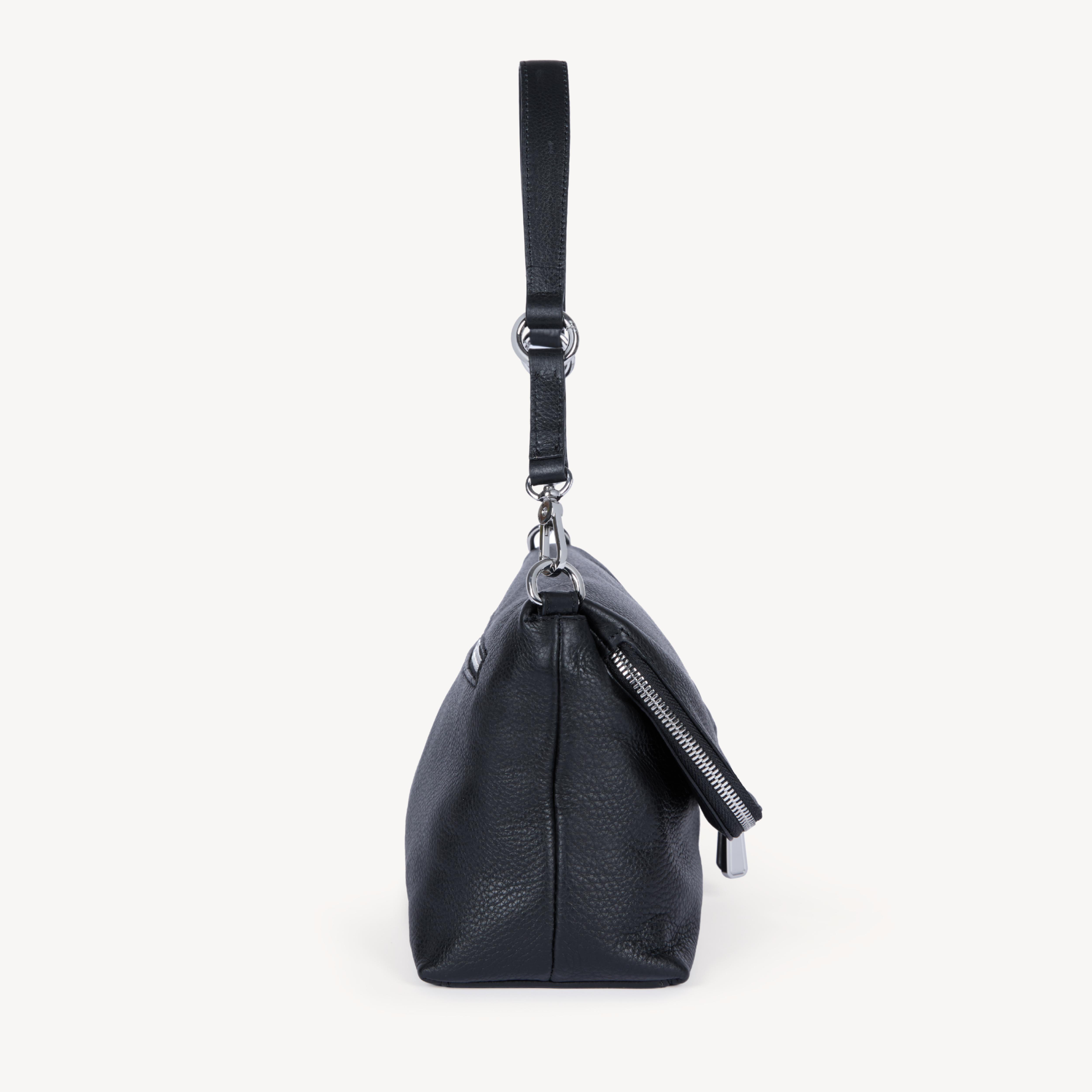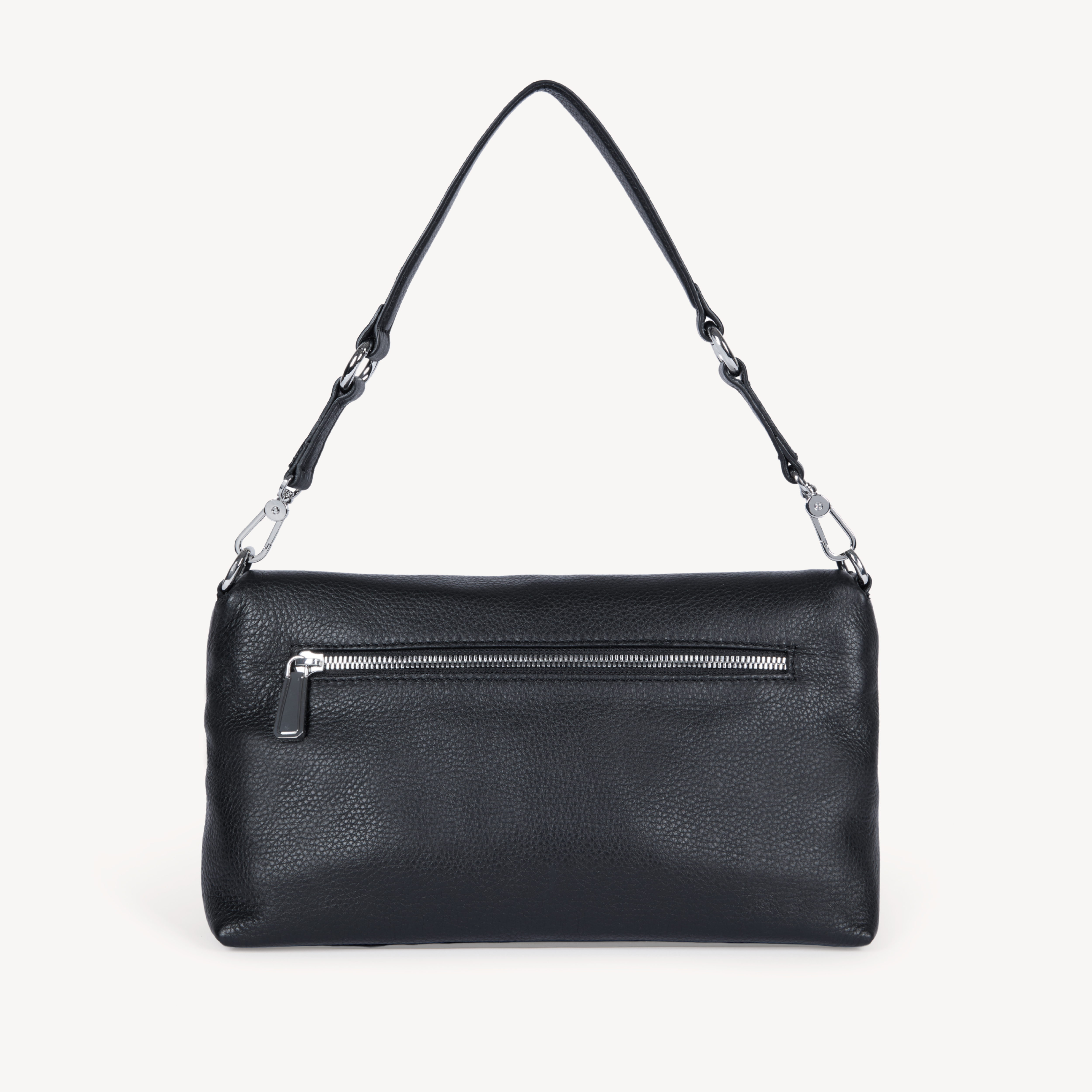 Black leather multi way handbag with silver hardware